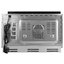 В камере объёмом 25 литров находится поворотное стеклянное блюдо диаметром 31.5 см, так что в ней поместится посуда большого размера. Три вида нагрева — микроволны, электрогриль и конвекция — позволяют выбирать способ приготовления в соответствии с рецептом, а два комбинированных режима расширяют возможности для сложных блюд. Микроволновая часть развивает мощность 900 Вт с пятью ступенями регулировки; гриль рассчитан на 1260 Вт, что позволяет быстро получить золотистую хрустящую поверхность. Есть быстрый старт на максимальной мощности, специальный режим для выпечки пиццы. Автоматическое приготовление с 8 программами (включая программу для картофеля) и функция разморозки предусматривают установку только веса продуктов.