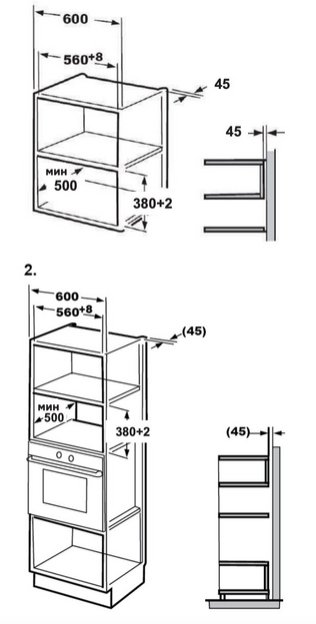- Размеры ниши для встраивания (ВxШxГ): 38х56х50 cм
