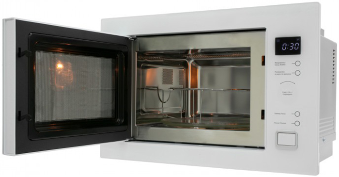 Микроволновые печи, как и другая бытовая техника, выпускаются в отдельно стоящем и встраиваемом варианте. Встраиваемые СВЧ-печи — вместительные устройства, которые можно отнести к премиальному сегменту. Они могут устанавливаться в колонну с другой бытовой техникой. Габаритные размеры встроенной печи позволяют монтировать ее в стандартную кухонную мебель. Изготовители предлагают модели в любом стиле — от хай-тек до классического и ретро. Подобные модели поддерживают несколько способов нагрева: кроме магнетрона, они могут оснащаться грилем разного типа, конвекцией и даже традиционным нагревом — такие СВЧ-печи по своим возможностям приближаются у духовке. Встроенная микроволновка подойдет для размещения в кухне любой площади, но стоимость ее может намного превышать стоимость отдельно стоящей модели.