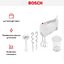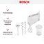 Обратите внимание на цвет миксера Бош — белый — он может стать как гармоничным дополнением кухонной обстановки, так и ярким акцентом. В комплекте с самим прибором идут дополнительные элементы: венчик для взбивания, крюки для теста, мерный стакан с крышкой, насадка-блендер.