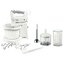 Обратите внимание на цвет миксера Бош — белый — он может стать как гармоничным дополнением кухонной обстановки, так и ярким акцентом. В комплекте с самим прибором идут дополнительные элементы: венчик для взбивания, измельчитель, крюки для теста, мерный стакан с крышкой, насадка-блендер.