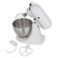 В комплект входят венчик для взбивания, крюки для работы с тестом, насадка-лопатка для качественного перемешивания. Есть возможность приобрести отдельно дополнительные насадки и тем самым существенно расширить функционал. Для удобства использования прибора имеется защитный обод, оснащенный воронкой. Предусмотрено 10 скоростей работы, регулировка осуществляется с помощью специального рычага. 1-я скорость подойдет для смешивания сухих ингредиентов, а 10-я — для взбивания сливок и яичных белков. Для приготовления теста рекомендуется использовать 4-6 скорости. Для лучшего смешивания предусмотрена функция плавного пуска.