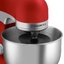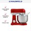 Выглядит как компактный стационарный прибор в вишневого цвета корпусе из металла, который сочетает заметную массу с аккумулирующим видом. Строгие линии базы и округлая арка откидного моторного блока задают уверенную форму, а нержавеющая чаша объемом 5 литров становится центральным элементом рабочей зоны. Габариты 32.8×15.2×32.9 см при весе около 7.25 кг делают аппарат стабильным на столе, а нескользящие ножки удерживают его на месте в процессе приготовления.