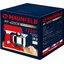 Материалы изделия отражают практический подход: корпус выполнен из металла, что придаёт конструкции жесткость и устойчивость к механическим нагрузкам; чаша изготовлена из нержавеющей стали, устойчива к коррозии, легко очищается и выдерживает контакт с продуктами. Комплект насадок включает венчик для взбивания, крюки для теста и насадку-лопатку для перемешивания, а защитный обод с воронкой обеспечивает удобную дозировку ингредиентов без лишних брызг.