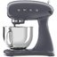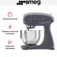 Миксер Smeg SMF03GREU — стационарная модель в металлическом корпусе оригинального оттенка «серый шифер». Благодаря высокой мощности 800 Вт и планетарному вращению насадки и головки, в которую она устанавливается, он справляется с приготовлением даже густого теста. Вместительная чаша объемом 4,8 литра изготовлена из нержавеющей стали. В комплект входят 3 насадки — венчик для взбивания, крюки для теста, лопатка для взбивания плотных продуктов. Все насадки и шестеренки миксера Смег SMF03GREU также изготовлены из нержавеющей стали.