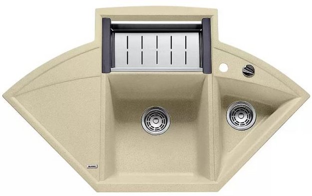 Обратите внимание на дизайнерские отличия мойки Бланко, которые помогут в создании идеальной кухни в вашем доме. Она выполнена в цвете шампань. Основной материал — гранит, он гарантирует надежность и долгие годы службы без повреждений.