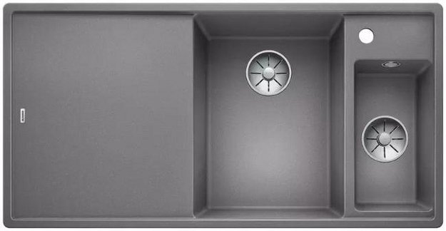 Blanco AXIA III 6 S-F — гранитная мойка с разделочной доской из высокопрочного стекла белого цвета. Модель снабжена двумя разноразмерными чашами и комплектуется практичным коландером для обсушивания овощей, фруктов и зелени. Высококачественный перелив C-overflow® защищает от случайного переполнения раковины водой.