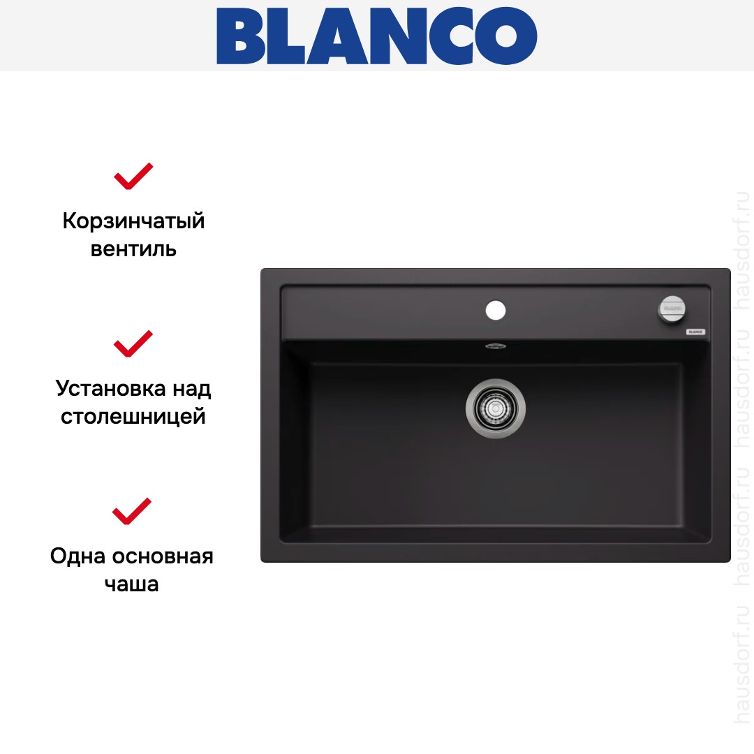 Мойка BLANCO DALAGO 8 Silgranit черный, клапан-автомат в Челябинске