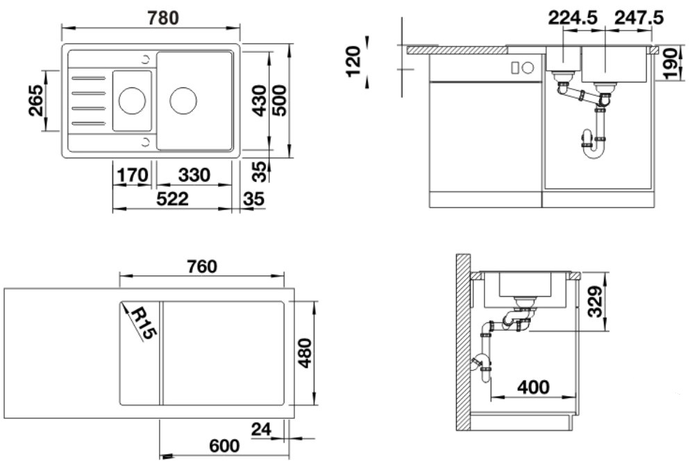 База — это шкаф, в который вы планируете устанавливать мойку. Данный параметр обозначает минимальную ширину между боковые стенками. Именно столько нужно, чтобы правильно разместить всю сантехнику.