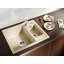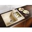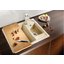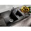 Врезная мойка выглядит аккуратно и стильно. Имеется возможность установки под столешницу, что сделает конструкцию еще более гигиеничной и эффектной. Оборачиваемая конструкция позволяет подстроить расположение чаш под индивидуальные особенности помещения и владельцев. Материал изготовления — искусственный камень Silgranit puradur II, на 80% состоящий из натурального гранита, идеально гладкий, прочный, не изменяющий цвет под действием пищевых красителей. Глубина основной чаши 19 см позволяет мыть посуду большого размера, не опасаясь, что брызги попадут на мебель. Клапан-автомат обеспечивает автоматический отвод воды, что повышает комфорт использования.
