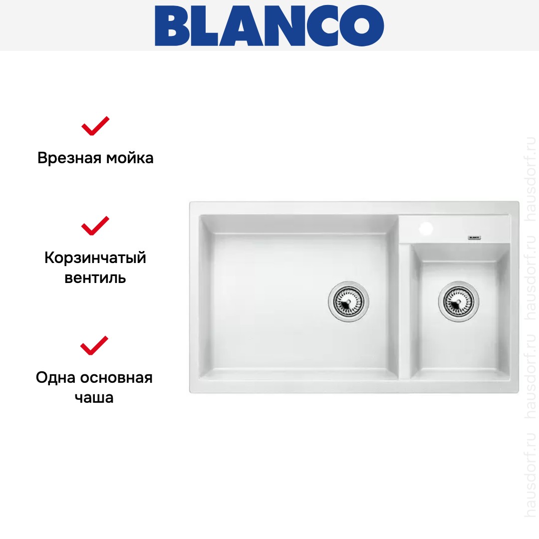 Эффектная кухонная мойка с двумя чашами. Модель из коллекции Blanco Metra подойдет для просторной кухни благодаря ширине 90 см. Универсальный дизайн и прямоугольная форма отлично выглядят в современной или классической кухне. Благодаря скругленным углам в ней не задерживается грязь. Так же универсален набор из 10 цветов — от белого и жасминового до цвета кофе, антрацит и алюметаллик. Мойка оснащена просторной, глубокой основной чашей и функциональной дополнительной чашей для мытья большой посуды или овощей. Широкая площадка позволяет удобно размещать даже несколько дополнительных аксессуаров. Модель изготовлена из запатентованного искусственного камня Silgranit PuraDur II, идеально гладкого и гигиеничного. Материал отличается высокой прочностью, поэтому появление царапин и повреждений исключено. Грязеотталкивающее покрытие гарантирует простоту в уходе. Имеется корзинчатый вентиль, который выполняет фильтрующую функцию, задерживая крупные частицы и не допуская их попадания в канализационную систему. Корзина вентиля легко извлекается, что позволяет без затруднений удалить оставшийся на ней мусор. Возможна установка клапана-автомата с отводной арматурой, который сливает воду путем нажатия кнопки на бортике, так что не нужно пачкать руки. Дополнительно можно приобрести разделочные доски, коландеры и решетки на раковину. Модель допускает установку под столешницу для более удобной очистки.