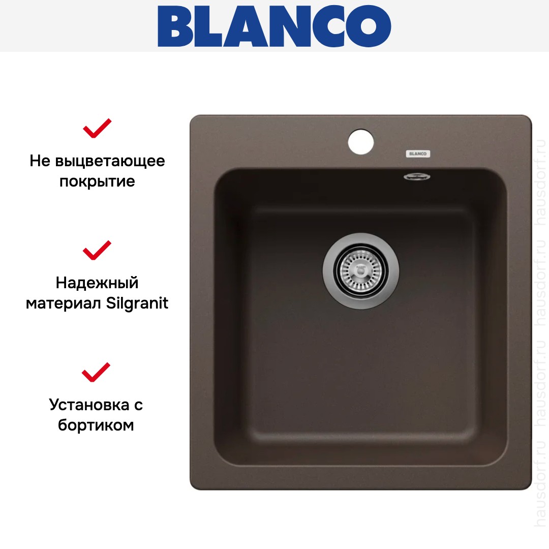 Обратите внимание на дизайнерские отличия мойки Бланко, которые помогут в создании идеальной кухни в вашем доме. Она выполнена в цвете кофе. Основной материал — Silgranit, он гарантирует надежность и долгие годы службы без повреждений.