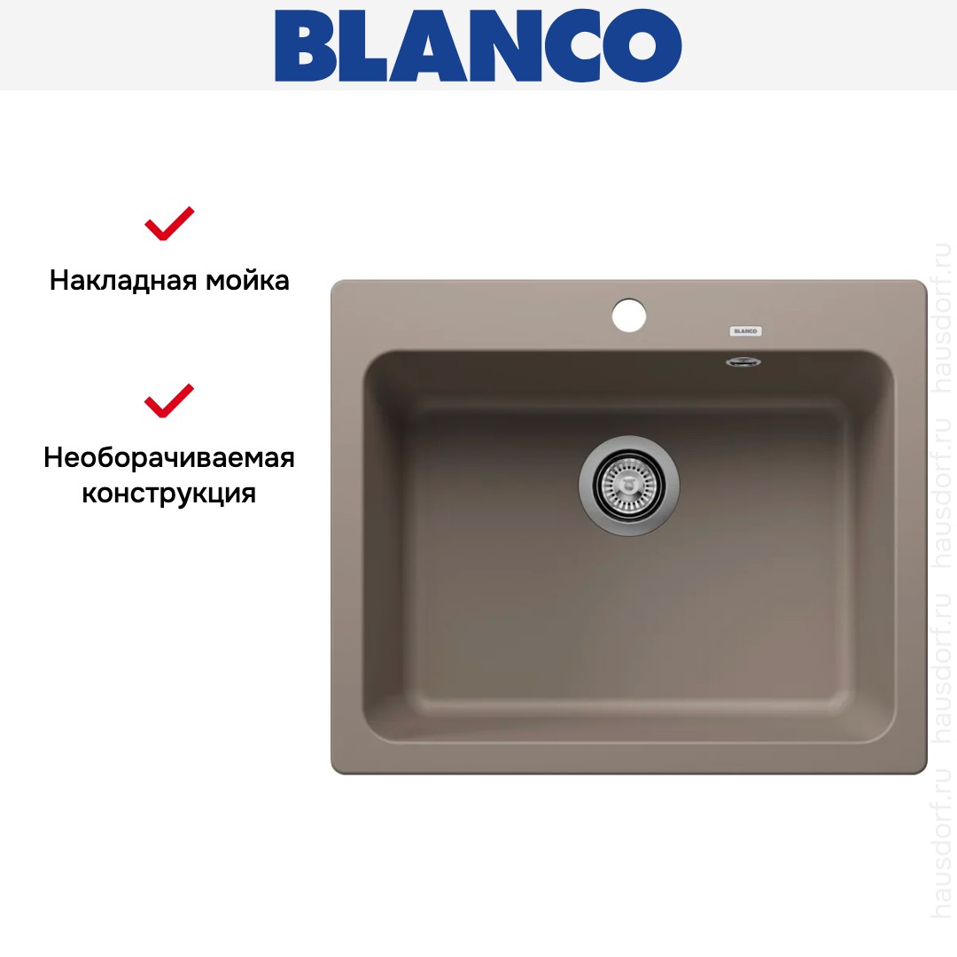 Накладная мойка Blanco — отличный выбор для тех, кто хочет создать гармоничное пространство с удобной сантехникой. простой в установке. Преимущество такой конструкции: легко подобрать практически к любой кухне и не придется демонтировать вместе с тумбой при ремонте или перестановке остальной мебели. Данная модель имеет стандартную форму, поэтому подходит большинству пользователей. Устанавливается над столешницей: это самый простой способ монтажа, зачастую с ним можно справиться даже без специалистов, главное — правильно рассчитать размеры ниши.