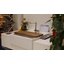 Накладная мойка — самая простая в установке и подключении. Она буквально «надевается» сверху кухонного шкафа вместо столешницы и может быть закреплена на готовой тумбе, без необходимости включать ее в проект на этапе дизайна. Ее можно легко самостоятельно подключить к коммуникациям, а также заменить в дальнейшем.