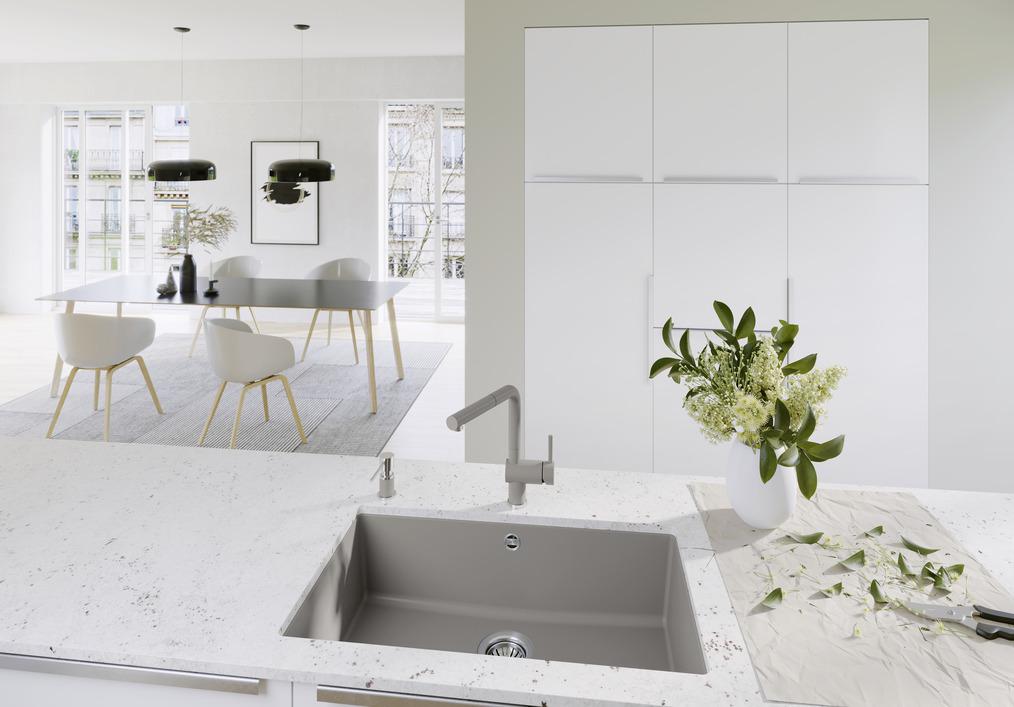 Мойка Blanco Rotan 700-U Silgranit Кофе — элегантное и практичное врезное решение в тёплом кофейном оттенке. Прямоугольный силуэт создаёт строгую, но уютную композицию на кухне. Подстольный способ установки обеспечивает бесшовный переход от столешницы к чаше, что визуально расширяет поверхность и облегчает уборку.