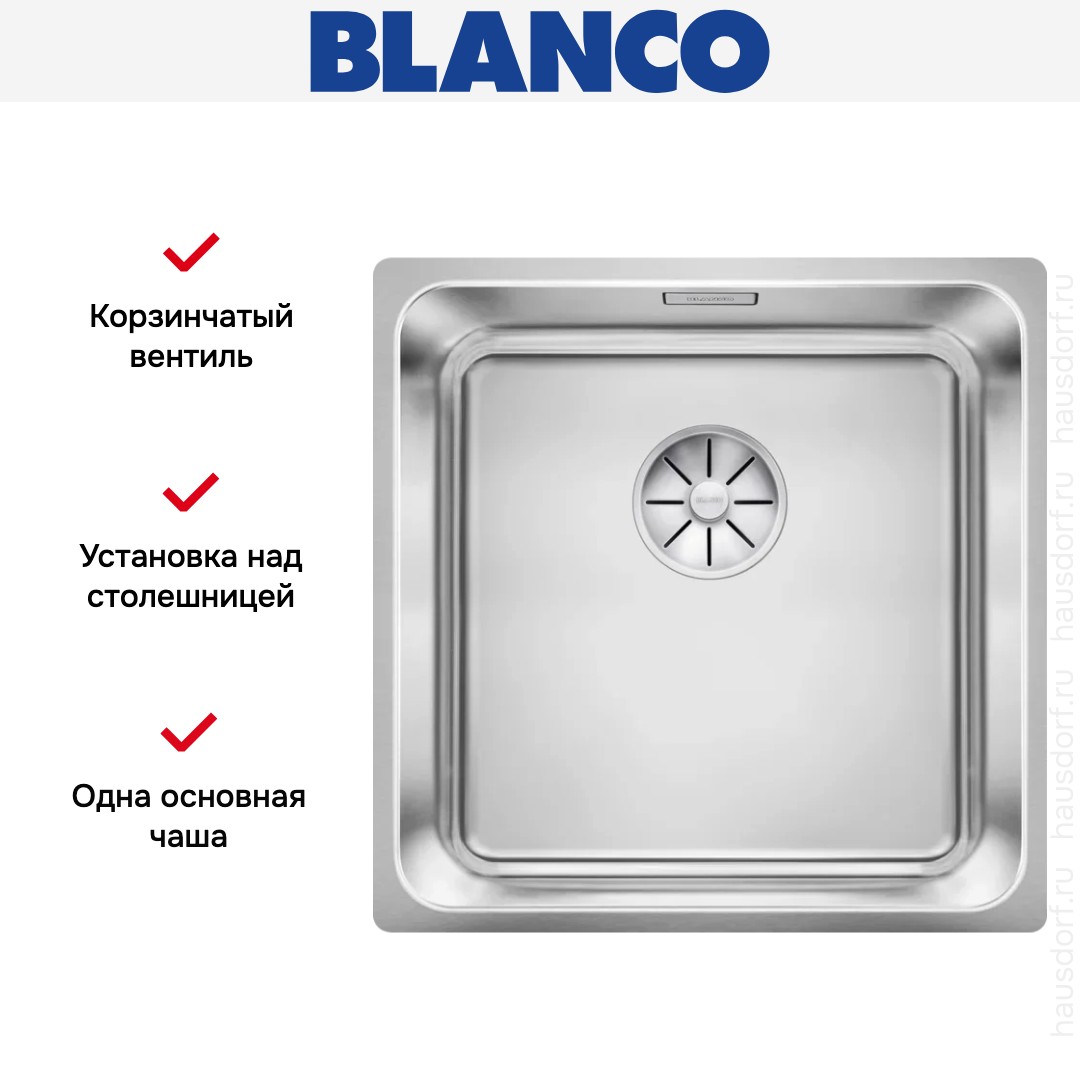 Врезная мойка Blanco — отличный выбор для тех, кто хочет создать гармоничное кухонное пространство с полностью вписывающейся в него сантехникой. Преимущество такой конструкции — плотное прилегание к столешнице, так как вырез подбирается индивидуально под габариты модели. Под стыки не попадает вода, поэтому срок службы значительно увеличивается, пользоваться ей удобно и приятно. Данная модель имеет стандартную форму, поэтому подходит большинству пользователей. Устанавливается вровень со столешницей, благодаря чему не остается стыков, в которых копились бы загрязнения. Устанавливается над столешницей: это самый простой способ монтажа, зачастую с ним можно справиться даже без специалистов, главное — правильно рассчитать размеры ниши.