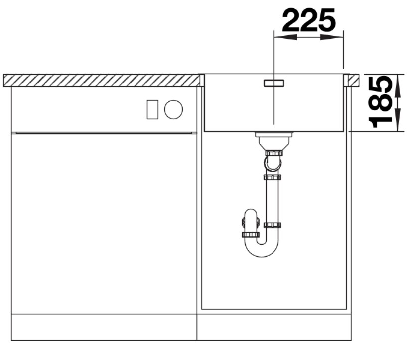 База — это шкаф, в который вы планируете устанавливать мойку. Данный параметр обозначает минимальную ширину между боковые стенками. Именно столько нужно, чтобы правильно разместить всю сантехнику.