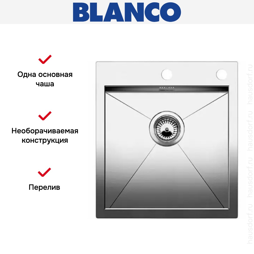Обратите внимание на дизайнерские отличия мойки Бланко, которые помогут в создании идеальной кухни в вашем доме. Она выполнена в цвете нержавеющая сталь. Основной материал — нержавеющая сталь, он гарантирует надежность и долгие годы службы без повреждений. У этого покрытия приятная полированная текстура.