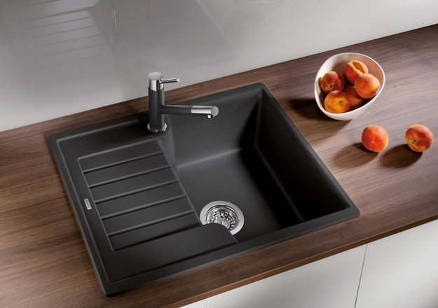 Обратите внимание на дизайнерские отличия мойки Бланко, которые помогут в создании идеальной кухни в вашем доме. Она выполнена в цвете черный. Основной материал — Silgranit, он гарантирует надежность и долгие годы службы без повреждений. Крыло, расположенное слева, является дополнительным рабочим пространством, на котором можно сушить посуду, разделывать мясо и нарезать овощи.