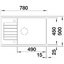 Габариты изделия 78×50 см делают его универсальным для большинства кухонь, включая компактные проекты. Монтаж выполняется накладным способом с бортиком, что упрощает установку и предотвращает попадание влаги под столешницу. Рекомендуемая ширина базы 60 см и размеры монтажного отверстия 76×48 см позволяют установить мойку в стандартную тумбу без доработок. Радиус скругления шаблона 1,5 см помогает аккуратно вписать элемент в вырез и обеспечивает эстетичный переход между столешницей и краем.