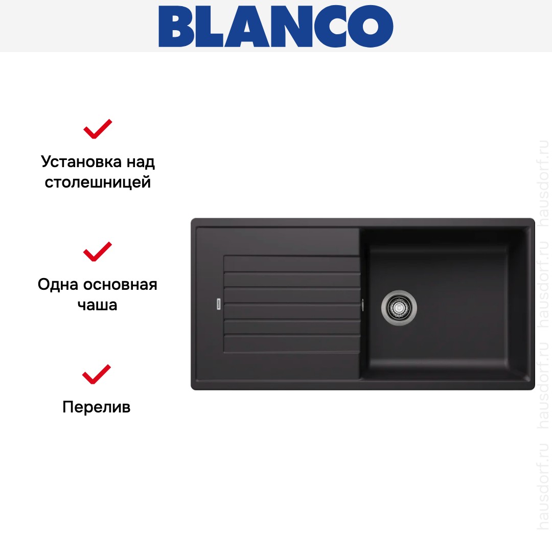 Накладная мойка Blanco — отличный выбор для тех, кто хочет создать гармоничное пространство с удобной сантехникой. простой в установке. Преимущество такой конструкции: легко подобрать практически к любой кухне и не придется демонтировать вместе с тумбой при ремонте или перестановке остальной мебели. Данная модель имеет стандартную форму, поэтому подходит большинству пользователей. Устанавливается над столешницей: это самый простой способ монтажа, зачастую с ним можно справиться даже без специалистов, главное — правильно рассчитать размеры ниши.