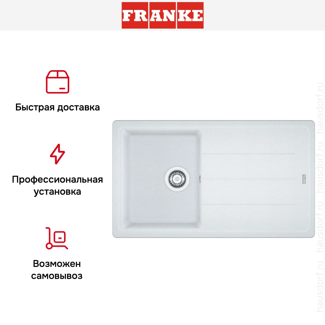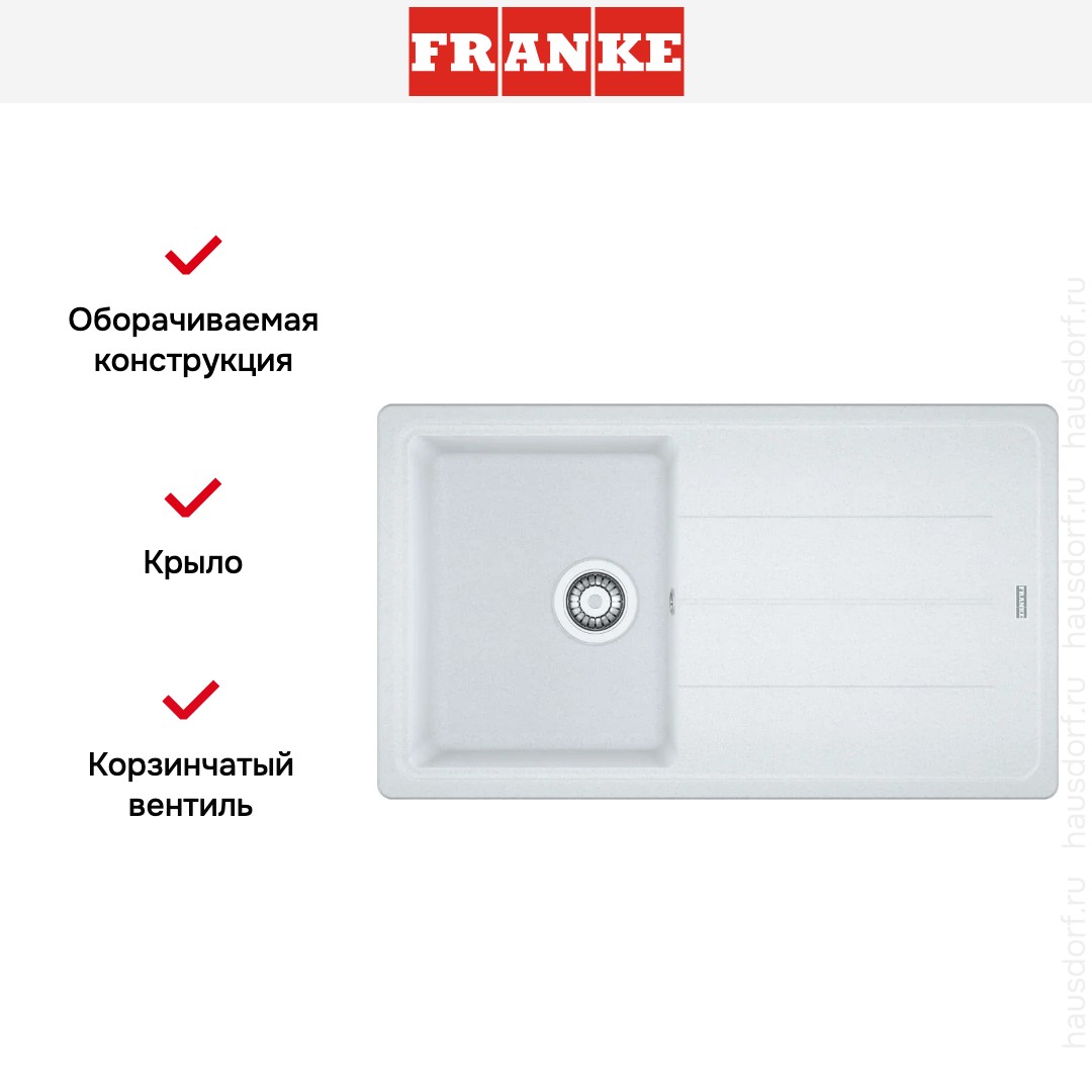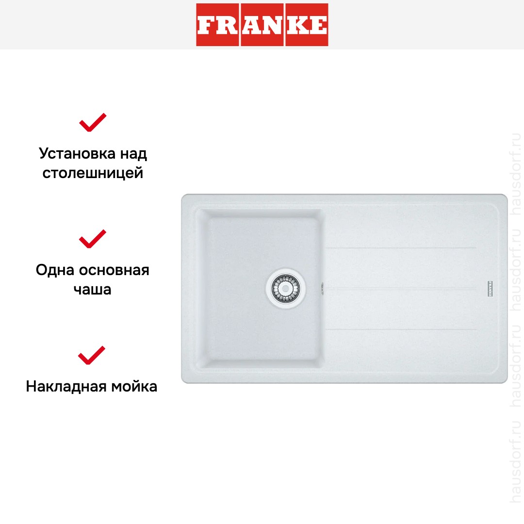 Мойка Franke BFG 611-86 белый выполнена в строгом прямоугольном дизайне серии Basis и привносит в кухню современную лаконичность. Внешний силуэт подчеркивают аккуратные скругления радиусом 2.4 см по периметру, которые смягчают общий вид и делают модель гармоничной в разных интерьерах. Белый цвет делает поверхность визуально лёгкой и универсальной, хорошо сочетаясь с материалами столешниц и фасадов.
