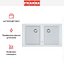Компактные габариты 86×50 см и рациональное расположение чаш позволяют устанавливать раковину в небольших помещениях и на островных секциях. Белый цвет хорошо сочетается с разными оттенками столешниц и фасадов, визуально расширяя пространство. В целом сочетание продуманной эргономики, надежного композитного материала и дополнительных элементов делает эту модель функциональной и долговечной для ежедневной эксплуатации.