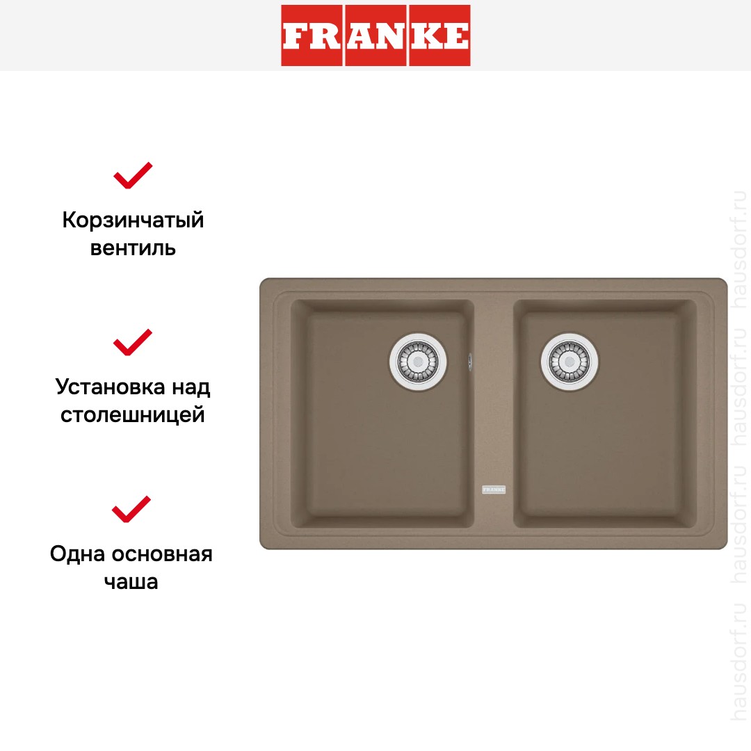 Мойка Franke BFG 620 86 Миндаль — накладная прямоугольная модель из фрагранита с тёплым оттенком миндаля.