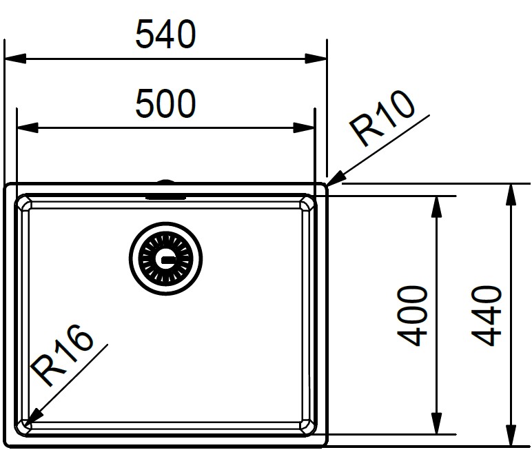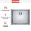 Особенностью конструкции являются минимальные радиусы скруглений: внутренняя чаша выполнена с закруглением 1,6 см, а внешние кромки — 1 см. Такой подход придаёт изделию чёткие геометрические формы, подчёркивая современный минималистичный характер, и в то же время упрощает очистку за счёт почти прямых углов. Мойка изготовлена из высококачественной нержавеющей стали и отличается превосходной устойчивостью к коррозии, царапинам и перепадам температур. Матовая поверхность сохраняет эстетичный вид даже при интенсивной эксплуатации, эффективно маскируя мелкие следы и отпечатки.