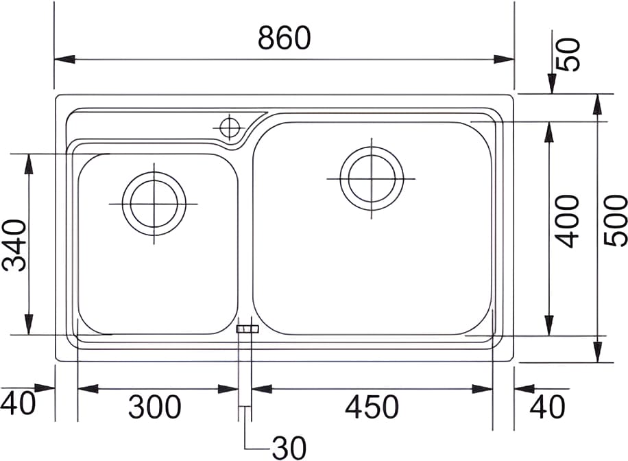 База — это шкаф, в который вы планируете устанавливать мойку. Данный параметр обозначает минимальную ширину между боковые стенками. Именно столько нужно, чтобы правильно разместить всю сантехнику.