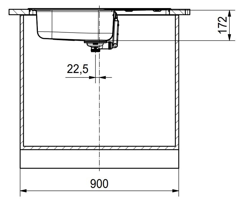 База — это шкаф, в который вы планируете устанавливать мойку. Данный параметр обозначает минимальную ширину между боковые стенками. Именно столько нужно, чтобы правильно разместить всю сантехнику.