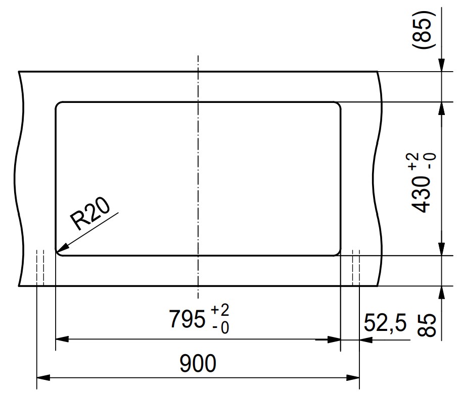 Изделие предназначено для установки над столешницей, что позволяет быстро выполнить монтаж и не требует сложной модификации кухонной мебели. Такой способ крепления особенно популярен в модульных гарнитурах, на дачах или в небольших помещениях, где важны практичность и мобильность. Для установки требуется тумба шириной 90 см, а проём в столешнице должен составлять 43×21 см с радиусом скругления 2 см, что гарантирует надёжную и герметичную посадку.
