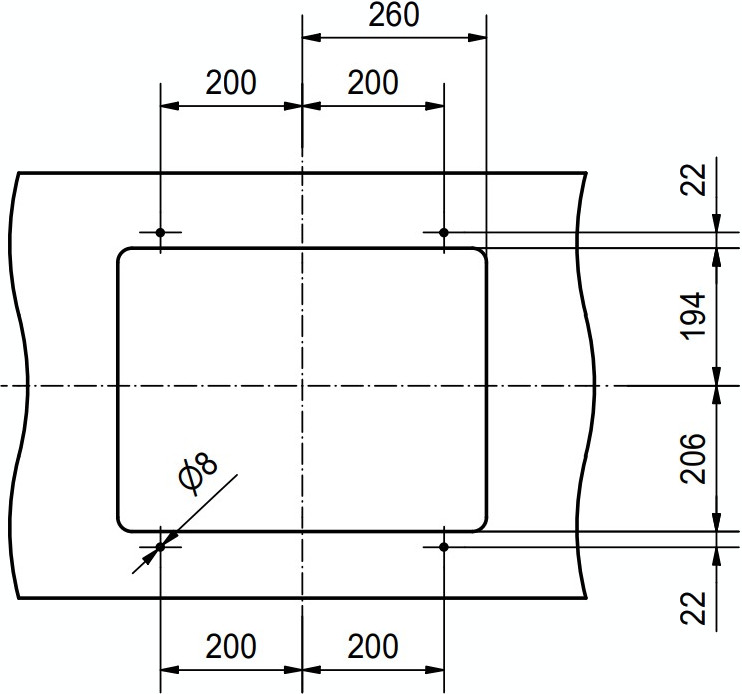- Ширина монтажного отверстия: больше на 22.4 см