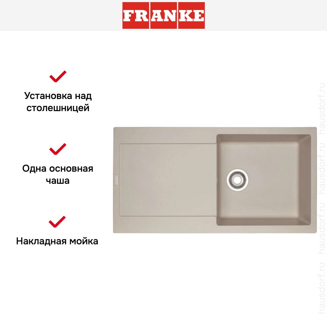 Мойка Franke Maris MRG 611 L Сахара. Это накладной столовый элемент с прямоугольной формой и продуманной функциональной компоновкой для современной кухни.