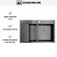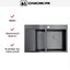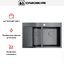 Материал изготовления — нержавеющая сталь толщиной 1.2 мм с PVD-покрытием, выполненная ручным методом производства. Такое сочетание означает, что поверхность обретает специфический оттенок вороненой стали и равномерную текстуру, а заводская обработка вручную позволяет добиться точности кромок и швов. В описании указано также шумоподавление, что помогает снизить уровень звука при работе с водой и посудой. Комплектность и продуманность узлов — корзинчатый вентиль и сифоны уже в наборе — уменьшает количество дополнительных покупок при монтаже.