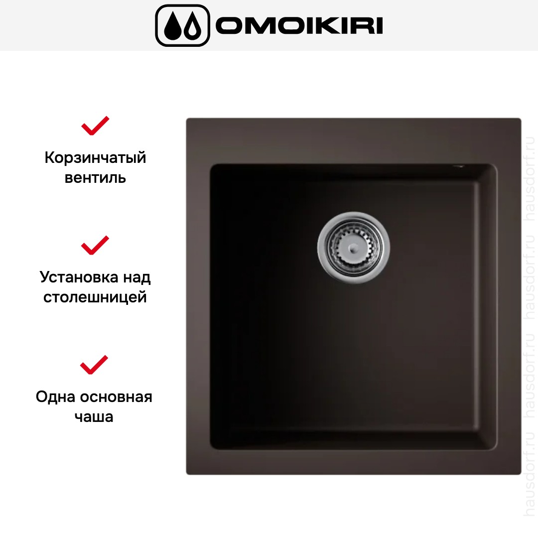 Мойка Omoikiri Bosen 47-ES представляет собой стильное и функциональное решение для компактной кухни: квадратная накладная конфигурация с четкими геометрическими линиями и глубиной 50 см обеспечивает аккуратное размещение над столешницей и гармонично смотрится в современных интерьерах благодаря насыщенному цвету «Эспрессо». Габариты 47×50 см и ширина базы 45 см делают модель идеальной для шкафов ограниченной ширины, а параметры монтажного отверстия 45×48 см упрощают подготовку рабочей поверхности при замене или установке. Конструкция не оборачиваемая, поэтому ориентация задает визуальную центровку пространства, а одна основная чаша размером 40×40 см и глубиной 20 см предложит удобный объем для мытья посуды и подготовки продуктов, при этом наличие перелива обеспечивает защиту от затопления при забывчивости. Материал TetoGranit толщиной 10 мм придает поверхности монолитный вид и приятную фактуру, сочетая эстетические и практичные нотки в оформлении мойки; насыщенная тональность оттенка подчеркивает отделку рабочей зоны и делает изделие заметным акцентом. Способ установки над столешницей облегчает монтаж и дает возможность сочетать мойку с разными типами покрытий, а фиксирующие зажимы гарантируют надежное крепление без дополнительных видимых элементов. В комплекте присутствует корзинчатый вентиль и сифон, что позволяет сразу подключить сливную систему и начать эксплуатацию без дополнительных покупок; вес изделия 7 кг облегчает транспортировку и упрощает монтажные работы. Благодаря продуманным габаритам и четко заданным размерам монтажного отверстия планирование расположения смесителя и вспомогательных зон становится предельно простым: продуманные пропорции чаши и отступы по краю позволяют рационально использовать пространство столешницы. Визуально модель удачно комбинируется как с классическими, так и с минималистичными обложками, придавая кухонной зоне аккуратность и завершенность. Для тех, кто ценит компактность без ущерба для функционала, изделие предлагает сбалансированное сочетание размеров, удобства и базового оснащения, а продуманное оснащение под ключ делает установку максимально беспроблемной; бренд Omoikiri гарантирует соответствие стандарта оформления, а категория мойка отражает назначение и область применения этого решения.