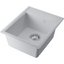 Материал композитный на основе натурального камня — ArtGranit, который прост в очистке, не подвержен воздействиям высоких температур, не царапается и сохраняет первоначальный оттенок. Заготовка формируется методом литья, толщина стенок достигает 10 мм. Такое исполнение производит впечатление монолитности и уверенной посадки на столешницу. Масса 4,5 кг удобна для переноски и монтажа, при этом изделие ощущается основательным. Однотонная палитра белого цвета поддерживает визуальную целостность гарнитура.
