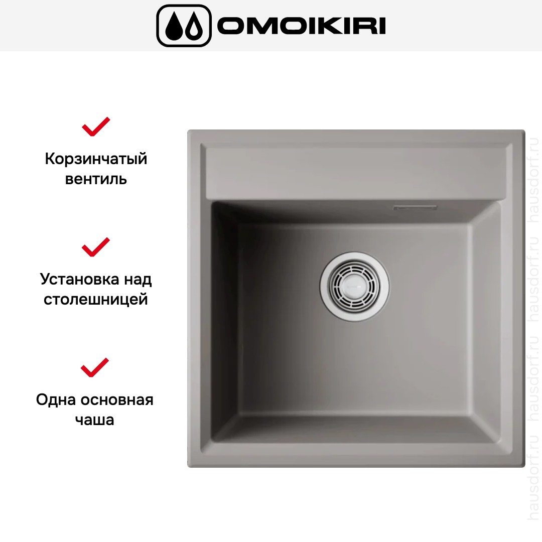 Мойка OMOIKIRI Daisen 51 GR представлена в сдержанном сером исполнении и сочетает в себе аккуратный квадратный силуэт и продуманную эргономику, выгодно подчеркнув современный интерьер и сэкономив место на рабочей поверхности: габариты изделия всего 51×51 см делают изделие оптимальным решением для компактных кухонь, а накладной способ установки позволяет быстро монтировать изделие над столешницей без сложных переделок. Конструкция выполнена как необорачиваемая, что обеспечивает стабильность формы и точность сопряжения с фронтом мебели при ширине базы 60 см; монтажное отверстие рассчитано на размеры 55.4×49.4 см (ширина 55.4 см, глубина 49.4 см), поэтому при подготовке столешницы вы будете уверены в совместимости и ровном прилегании. Центром композиции служит одна основная чашa, её внутренние размеры 44×37 см и вертикальная глубина 19.5 см создают удобный объем для мытья крупной посуды, при этом предусмотренный перелив защищает от переполнения, а грамотно расположенные радиусы облегчают уход. Прочный композит ArtGranit обеспечивает стойкость к механическим воздействиям и эстетическую однородность поверхности, толщина стенки 10 мм придает ощутимую массивность и надежность, а метод производства — литье — гарантирует отсутствие швов и равномерность структуры материала. В комплекте предусмотрен корзинчатый вентиль, упрощающий слив и предотвращающий попадание крупных частиц в трубопровод, фиксирующие зажимы облегчают и ускоряют монтаж, а поставляемый сифон завершает установочный набор, исключая необходимость докупки базовых комплектующих. Практичность дополнена высокой функциональностью: квадратная форма чаши рационально использует внутренний объем, облегчая размещение посуды, а гладкая матовая поверхность серого оттенка скрывает мелкие следы использования и придает рабочей зоне аккуратный, спокойный характер. Такое сочетание размеров, материалов и продуманных деталей делает модель привлекательной для тех, кто ценит компактность, надежность и простоту ухода; изделие одинаково хорошо подойдет для монтажа в новых кухонных проектах и при обновлении существующей обстановки, сочетаясь с различными по стилю столешницами и гарнитурами. Наличие всех необходимых элементов для установки и эксплуатации минимизирует время на монтажные работы и упрощает ввод в эксплуатацию, а продуманная геометрия обеспечивает удобный доступ к рабочей зоне и комфорт даже при регулярном интенсивном использовании, что делает покупку выгодной инвестицией в повседневный комфорт и чистоту кухни.