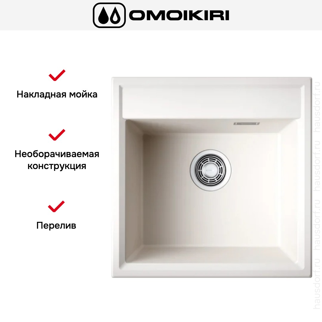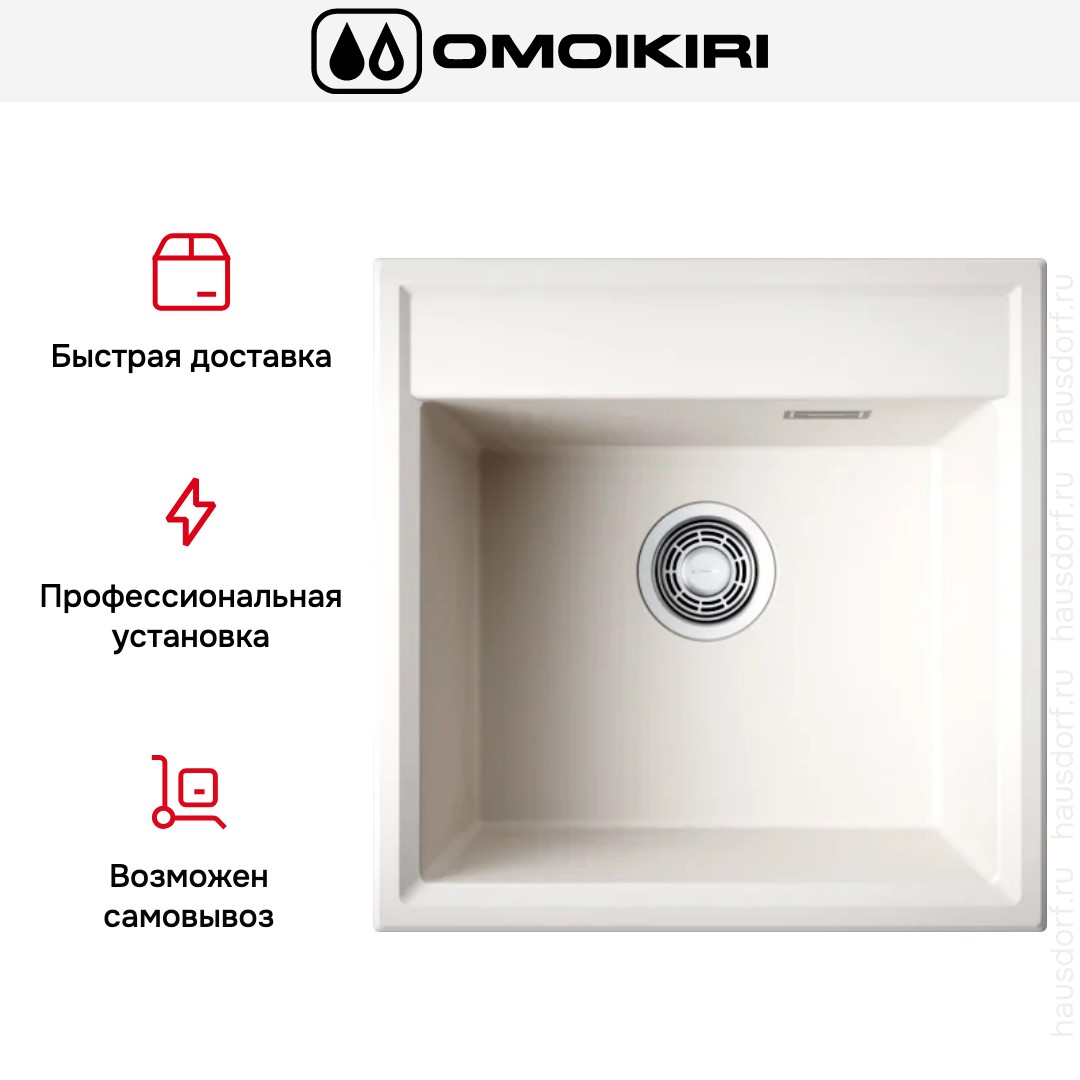 Мойка OMOIKIRI Daisen 51-PA — накладная квадратная модель 51×51 см из композитного материала ArtGranit в цвете Пастила.