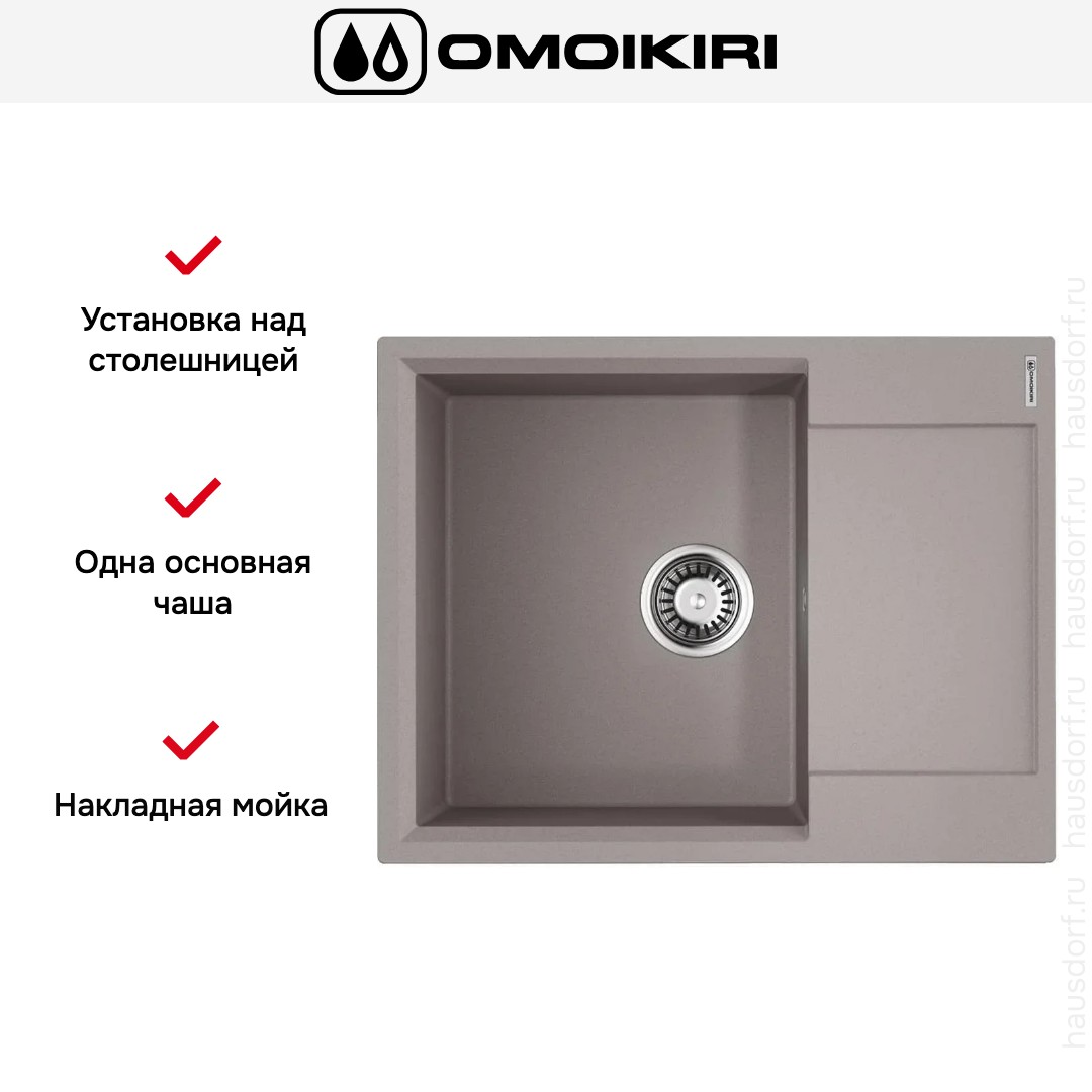 Мойка OMOIKIRI DAISEN 65 GR — стильное решение для компактной кухни с максимальной функциональностью. Прямоугольная накладная модель выполнена в благородном оттенке «Серый Ленинград» и легко впишется как в современный минимализм, так и в классические интерьеры. Плавные линии и матовая фактура материала придают кухонной зоне изящный вид, а крыло служит удобной рабочей зоной для сушки посуды или временной раскладки продуктов.