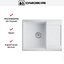 По интерьеру мойка универсальна: белого цвета поверхность гармонирует с деревянными, каменными и стеклянными столешницами. Четкая прямоугольная форма не перегружает кухню и поддерживает строгую композицию гарнитура — уместно смотрится и в спокойных светлых интерьерах, и в более контрастных.