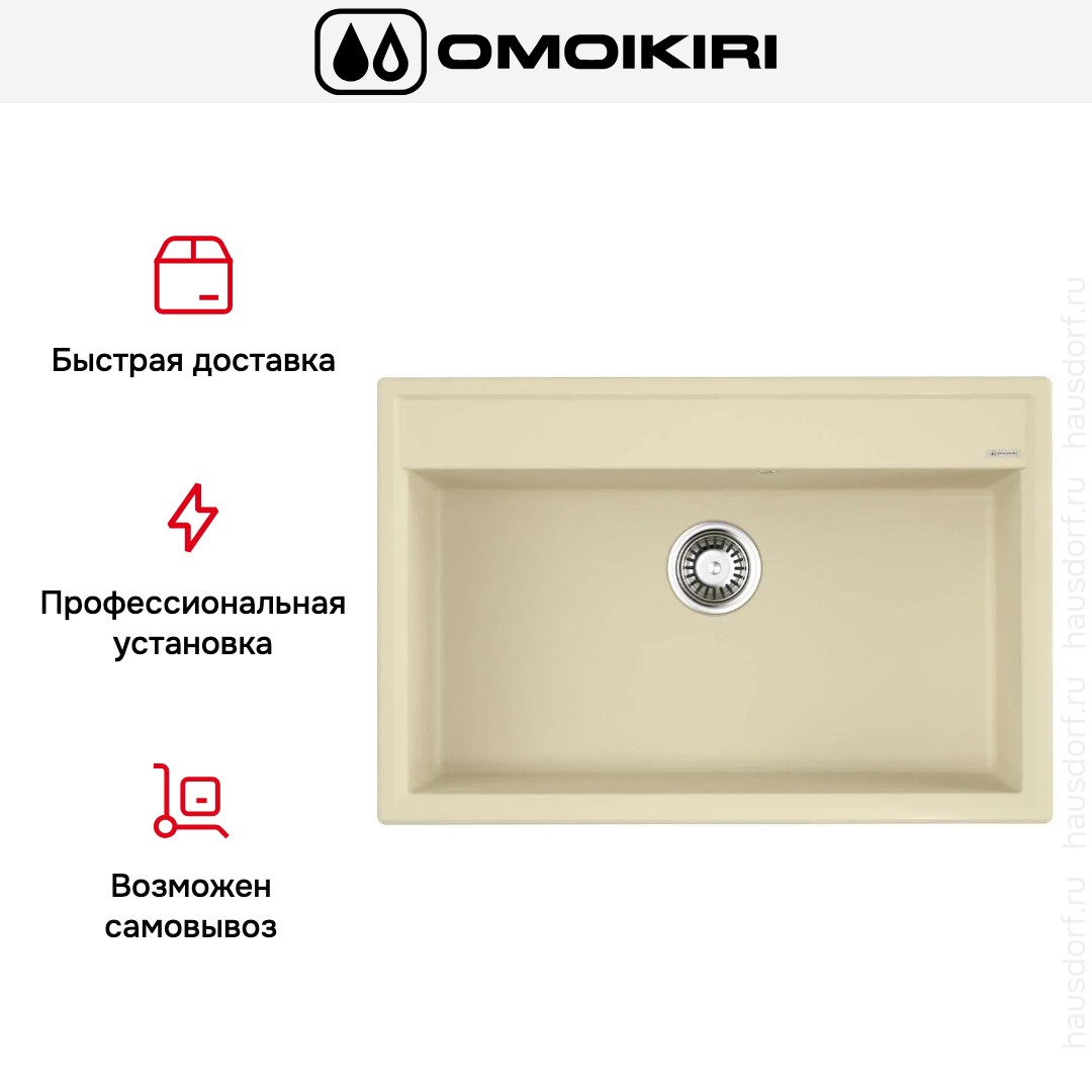 Мойка OMOIKIRI Daisen 77 BE — элегантное решение для кухни в тёплом ванильном цвете. Она подчёркивает интерьер, не перегружая пространство, и легко вписывается в разную по стилю обстановку. Прямоугольная форма создаёт лаконичный силуэт и обеспечивает удобную рабочую зону. Накладной способ установки упрощает монтаж и даёт возможность быстро заменить прибор без трудоемкой процедуры. Необорачиваемая конструкция рассчитана на фиксированное положение, что важно при продуманной планировке техники и коммуникаций.
