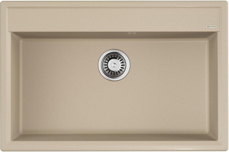 выглядит бежевого цвета и исполнена в лаконичном прямоугольном силуэте: габариты 77×51 см подчёркивают компактность, а ровные контуры и ровная кромка толщиной 10 мм создают аккуратный профиль. Монохромный тон чаши делает её спокойной заметной деталью интерьера, не отвлекая внимание от общей композиции кухни.