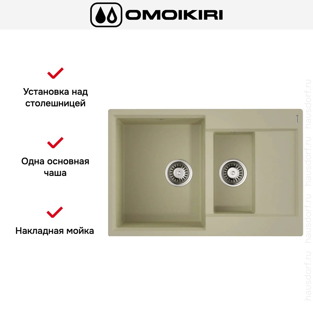 Мойка Omoikiri Daisen 78-2 BE. Элегантное прямоугольное изделие в ванильном оттенке сочетает лаконичную эстетику и продуманную функциональность. Накладная установка делает дизайн универсальным и позволяет легко обновить интерьер без дорогого ремонта столешницы. Материал ArtGranit и толщина стенок 10 мм придают ощущение монолитности и солидности в работе.