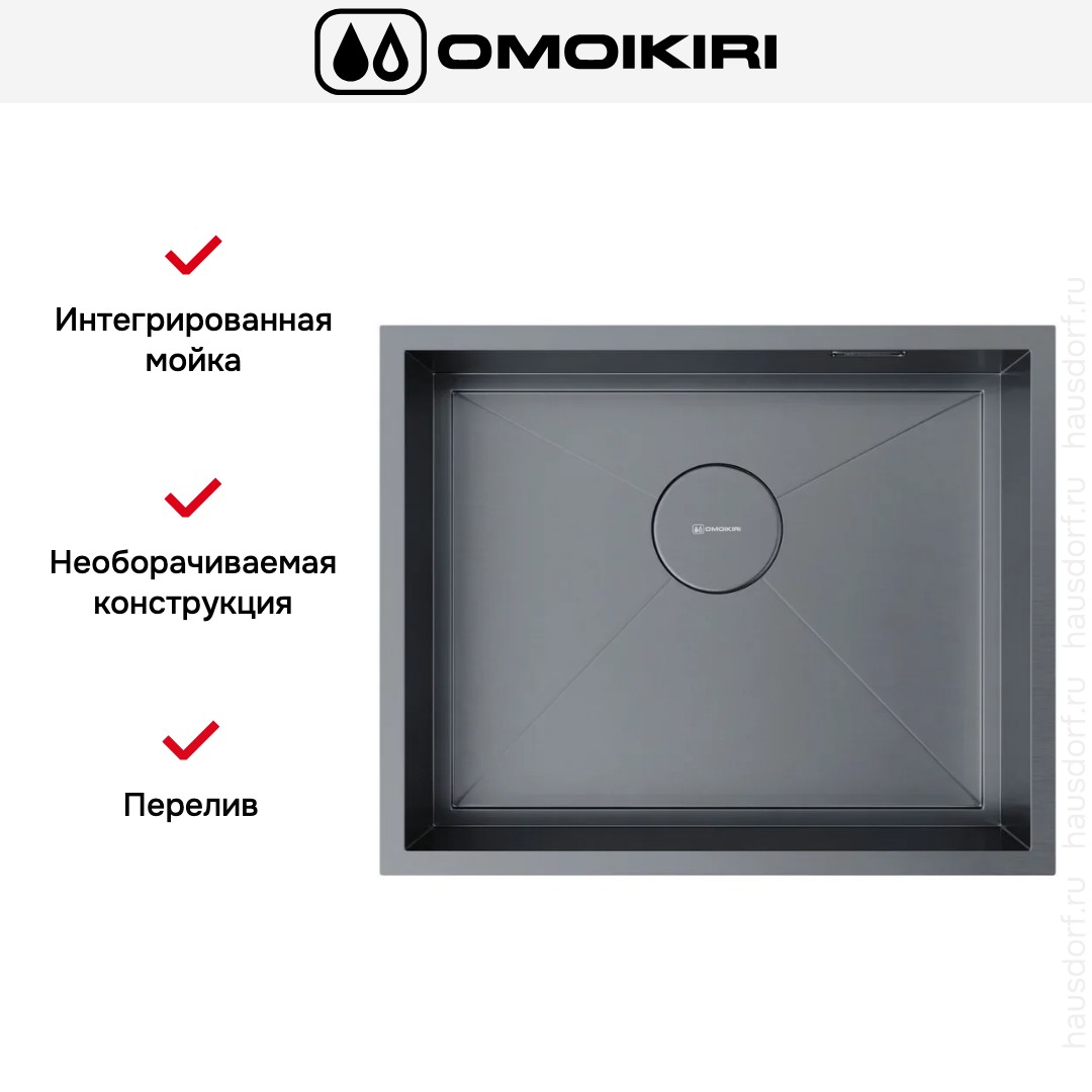 Мойка Omoikiri Kasen 54-16 INT GM сочетает стиль и практичность в компактном формате, идеальна для современных кухонь. Ее строгая прямоугольная форма подчеркнута вороненой цветовой гаммой, которая придает изделию благородный и ненавязчивый вид. Подстольный монтаж делает поверхность рабочей зоны цельной и минималистичной, что особенно ценно в интерьерах в скандинавском или лофт-стиле. Плавные линии и аккуратные фаски создают ощущение премиальности при визуальной легкости.