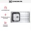 Мойка выглядит лаконично и функционально: прямоугольный силуэт размером 86×50 см с мягко очерченными углами радиусом 10 см придаёт рабочей зоне аккуратный стальной акцент. Поверхность нержавеющей стали отдаёт нейтральным металлическим оттенком, а расположение крыла может быть адаптировано — слева или справа — в зависимости от планировки кухни. Конструкция оборачиваемая, что даёт свободу при выборе стороны размещения крыла.
