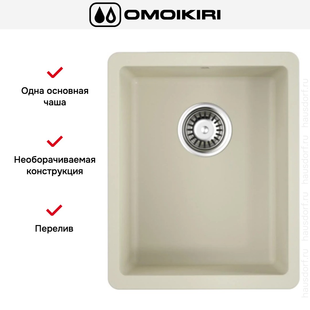Мойка Omoikiri Kata 34-U BE — врезная модель под столешницу, объединяющая лаконичный профиль и продуманную эргономику.