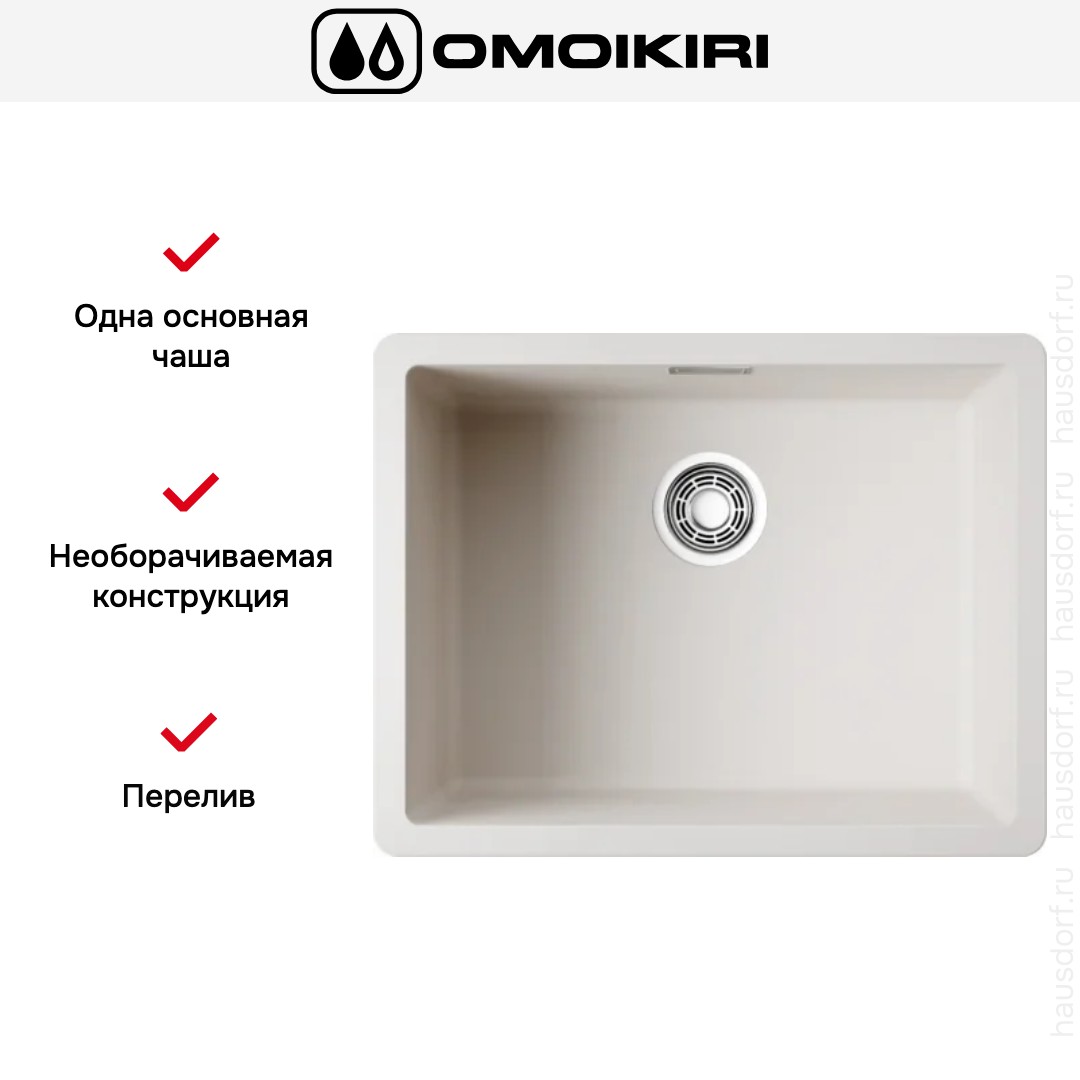 Необорачиваемую мойку можно установить только в одном положении — поэтому при наличии крыла необходимо заранее продумать, как вы хотите ее разместить. Модель имеет одно отверстие для смесителя, может быть разной формы — круглой, квадратной, прямоугольной и нестандартной. Изготавливаются из разных материалов.