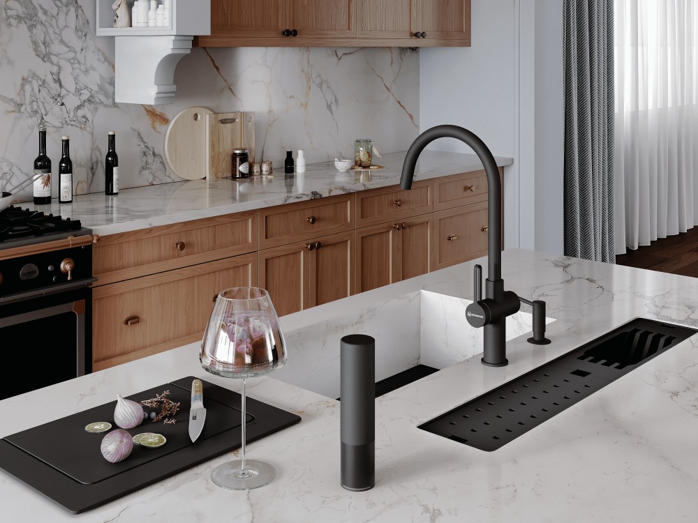 - Интегрированная установка под столешницу формирует единое пространство вместе с мебелью.