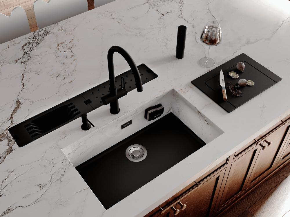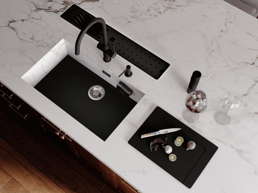 Комплектность продумана: сифон входит в поставку, так что базовый узел слива уже у вас на руках — остается корректно установить и подключить. В повседневной работе такая модель помогает рационально использовать пространство: широкая чаша берет на себя основную рутину, а интеграция под столешницу поддерживает ровную линию рабочей поверхности. Черного цвета исполнение легко сочетается с фасадами в светлой и темной палитре, подчеркивая архитектуру кухни.